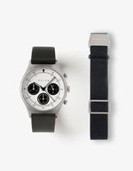 • Sleekly packed with a leather watch and an extra quick-release parachute strap, this bundle makes style changes simple, fast, and tool-free.