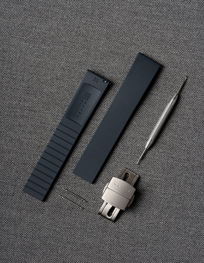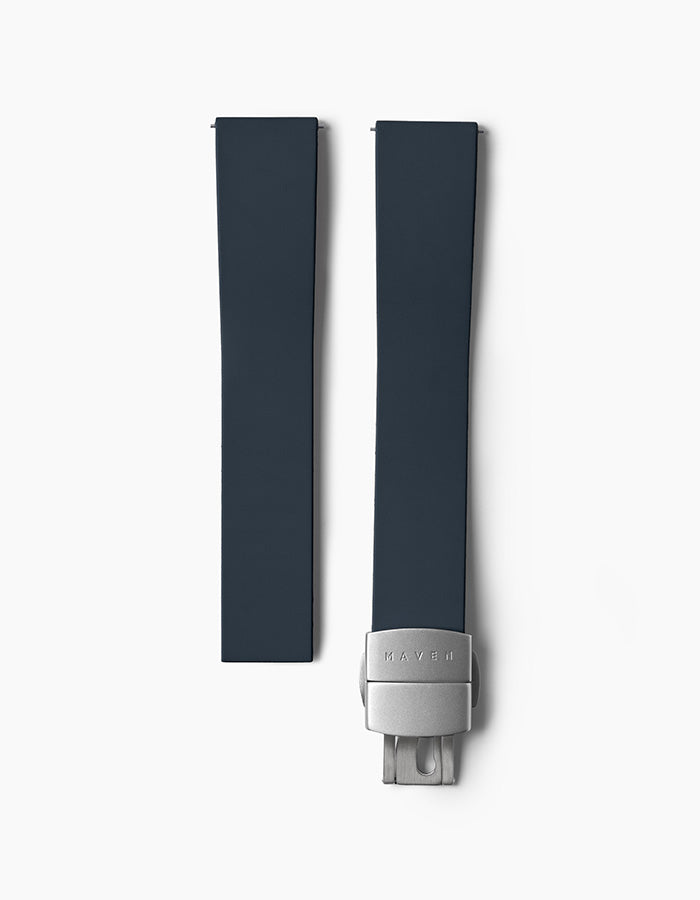 Crafted from premium FKM (Fluoroelastomer), the MAVEN CTS Strap is built for comfort, durability, and a custom fit. Resistant to heat, UV, oils, and sweat, it’s perfect for daily wear and outdoor use. The cut-to-size design ensures a tailored fit, while quick-release spring bars make switching effortless. Finished with a sand-blasted texture and stainless steel butterfly clasp, this rubber strap offers lasting performance and refined style.