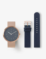 STORM CLOUD CAMEL 40MM + NAVY LEATHER STRAP SET (ROSE GOLD)